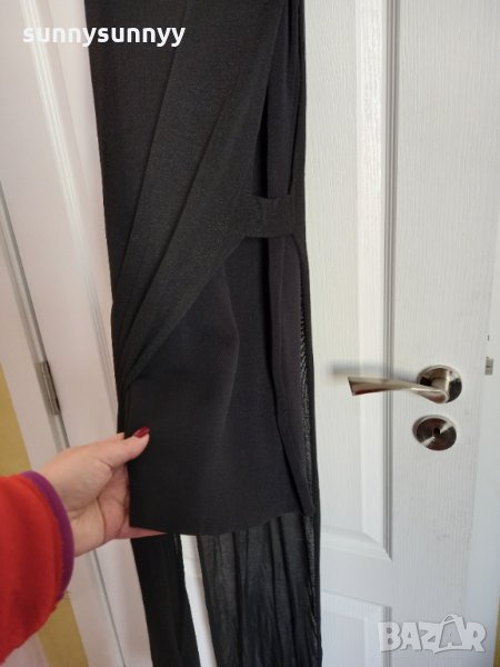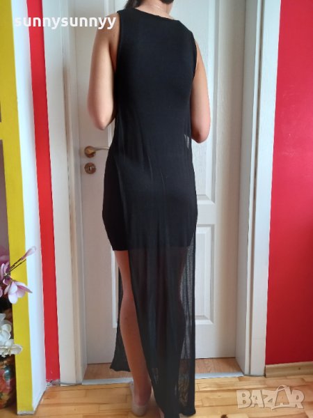 Роклята е обличана 1 път.Купена за 69лв.Хубава материя за сезона подходяща.Тя е къса рокля по тялото и отгоре все едно тюлено пак плътно не мн прозрачно все едно 2ра рокля отгоре която е отпред и отпада а отстрани е отворено.