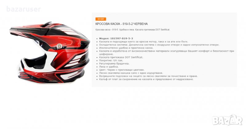 Каска за Мотор тип Крос Червена/181597-819-5-2 с DOT Сертификат → Обява 32412837