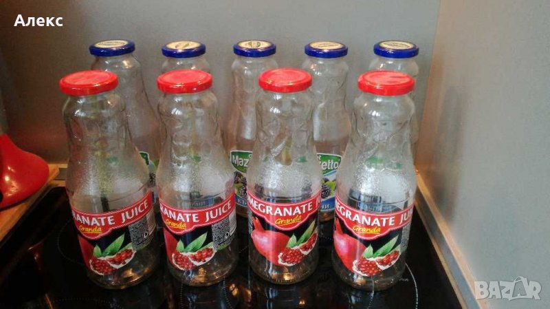 .Стъклени бутилки на винт ползвани веднъж фабрично 9броя за 9лв.