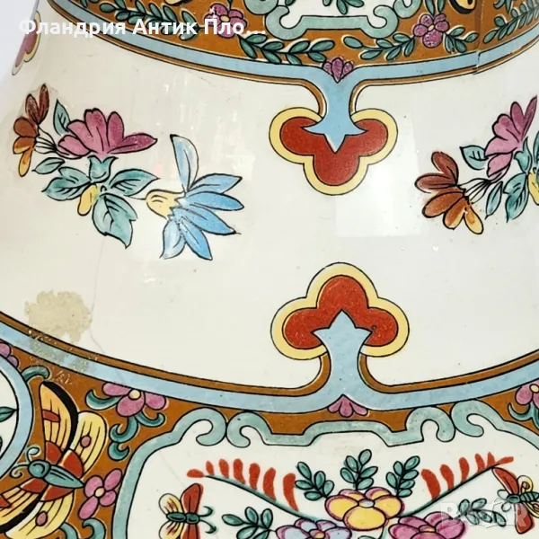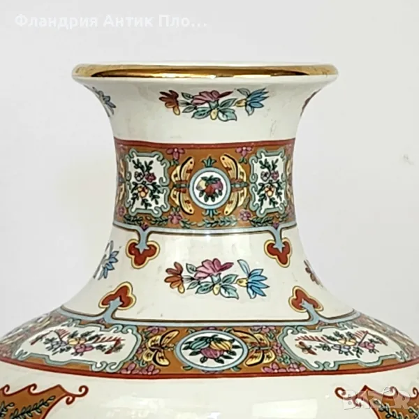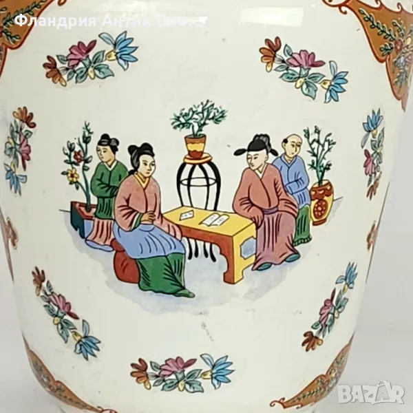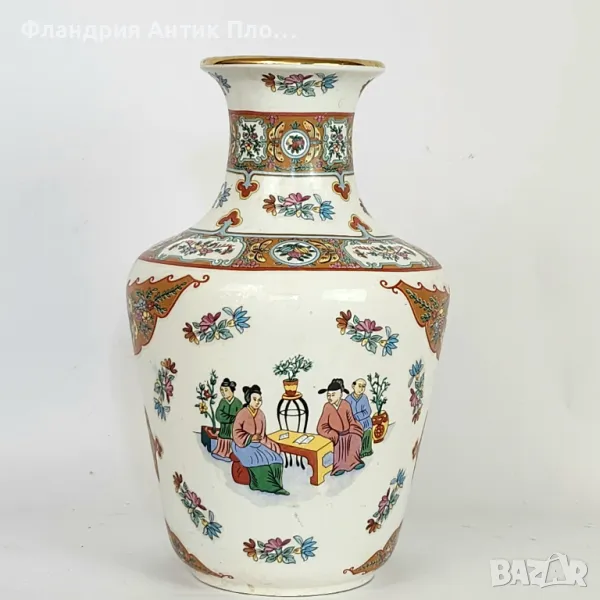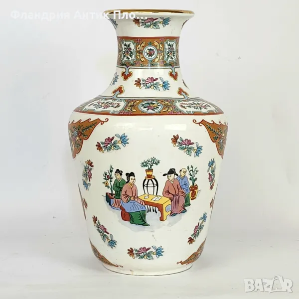 Голяма азиатска порцеланова ваза "Картоиграчи", с маркировка и златен кант. Височина 38см, широчина 23см. Старинна изработка