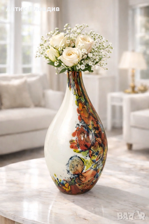 Голяма масивна стъклена ваза, тип Мурано.
