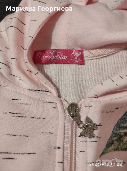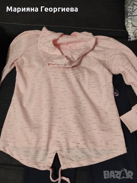 Детски екип за момиче, размер 164(долницата е с размер 158). Почти като нов. Цена 24лв. Детски суитчър размер 146-152-Crivit,носен но много запазен. Цена 6лв. Цена и за двете 27лв.