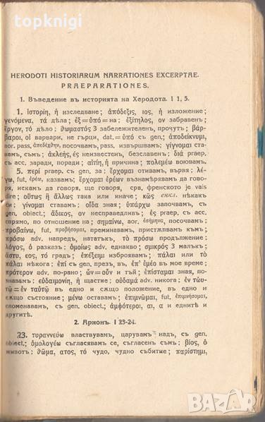 Въ тази книга сж дадени по откжси и по глави значенията на почти всички думи у Херодота по избора отъ № 14 на Bibliotheca Graeca et Latina, преведени сж всички по-мжчни изрази и еж помѣстени нѣкои по-важни граматически и исторически обяснения. Съ тѣзи улеснения леко и бърже може да се прочете голѣма часть отъ текста, даденъ въ избора.