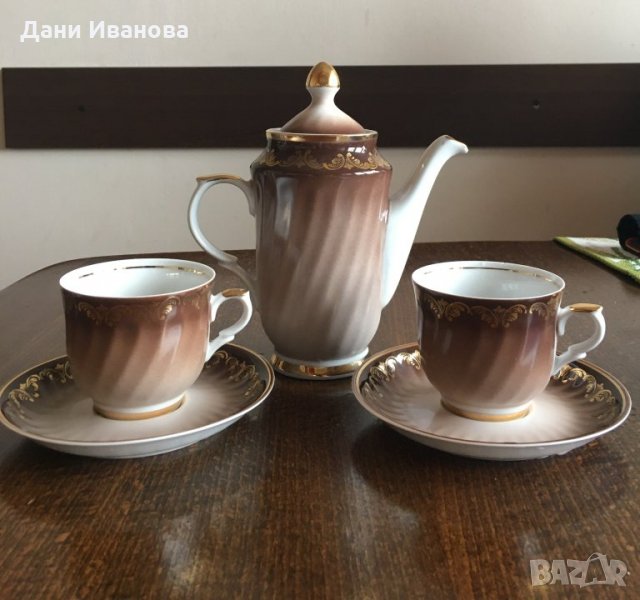 Порцеланов сервиз за кафе с 2 чаши и каничка → Обява 32438952