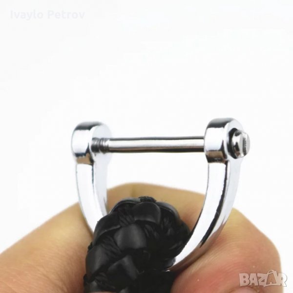 Масивна метална закопчалка, елегантно допълнена с кожена оплетка.