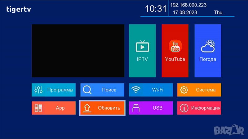 Tiger T2 6701 е с заводски инсталиран и настроен, което ви позволява достъп до голямо разнообразие от Бг телевизия, турски телевизии, както и други чуждестранни телевизии.