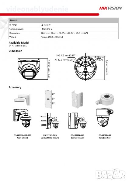 Подходяща монтажна основа: DS-1280ZJ-XS (3–осова настройка при монтаж) (не е в комплекта)