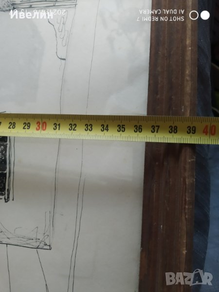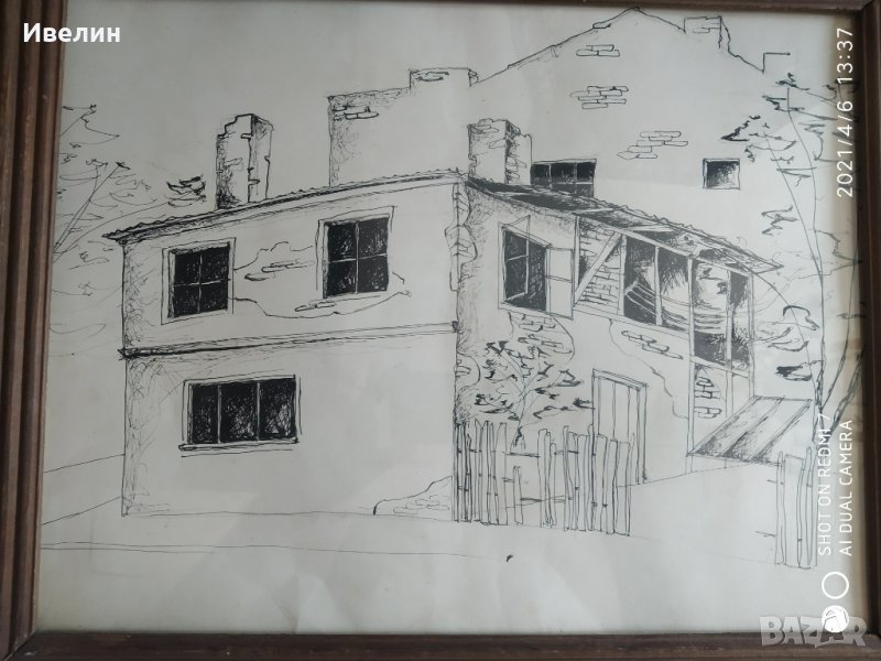 картина-пейзаж,туш на картон.дървена рамка със стъкло,