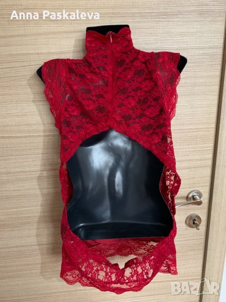 Червен дантелен потник, М размер, обличан веднъж..Отзад гърба е гол.Отпред има потниче като подплата, стои за да не прозира.Разтяга се.Изпращам по Еконт/Спиди, може и лично предаване. Гр Пловдив