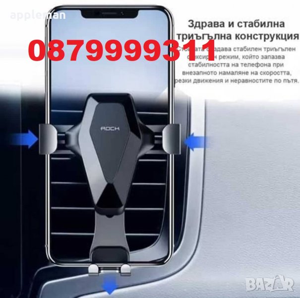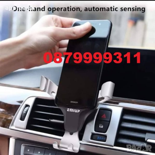 Захваща се за решетката / въздуховода на парното, и има автоматична функция, щом се постави телефона, посредством гравитацията, автоматично се захваща и затяга стабилно.