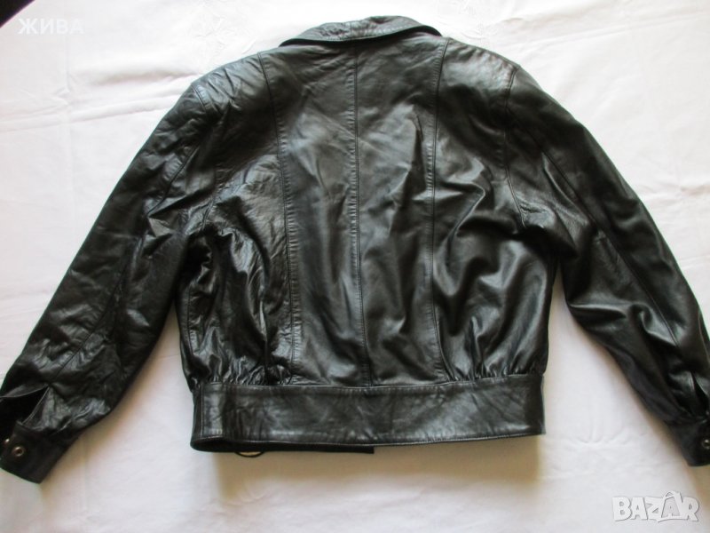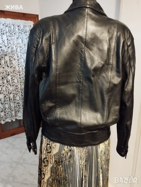 LOVE DOLL естествена кожа, черно дамско яке. размер L, ширина на гърба от рамо до рамо 48см., ръкав 60см., гръдна обиколка 116см., обиколка нй-долу на колана 82см.