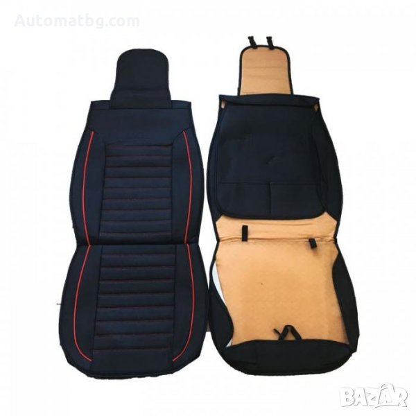 Защитете своите седалки с този комплект универсални постелки за автомобил. Придава нов и по-модерен вид на вашият автомобил. Висококачествена изработка от луксозна дищаша ПВЦ кожа и пяна. * ПВЦ(поливинилхлорид) изкуствената кожа е по-груба и твърда спрямо ПУ(полиуретан) кожата, също така ПВЦ кожата е по-устойчива на физически третирания. Лесен и бърз монтаж. Лесни за почистване - може да се пере. Цвят: Черно с червено. Размери Дължина: 146см Ширина: 54см Посочената цена е за 2бр.