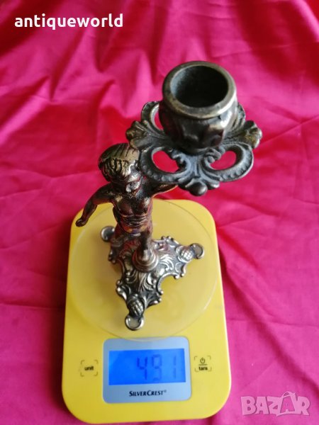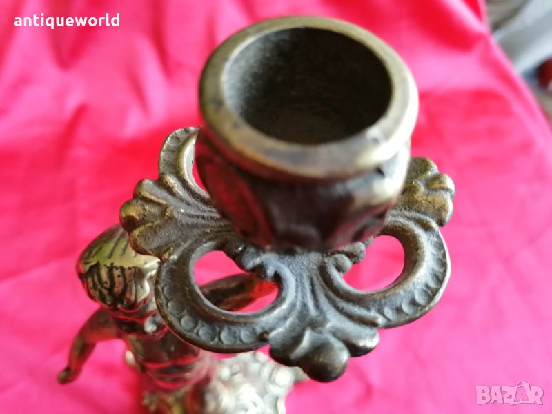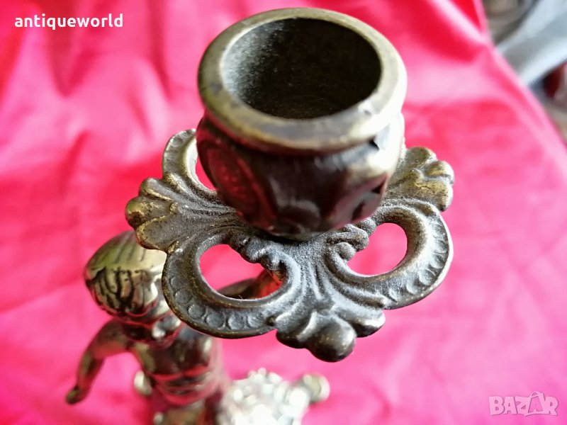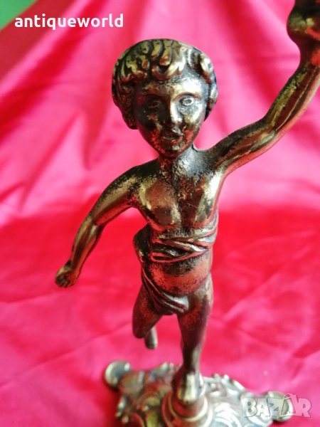 Много Красив Стар Масивен Бронзов БАРОКОВ Свещник Момченце.