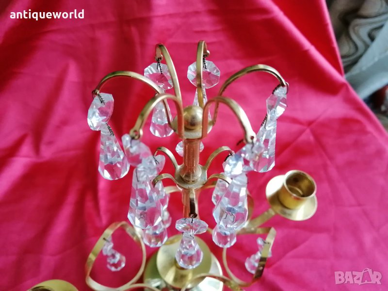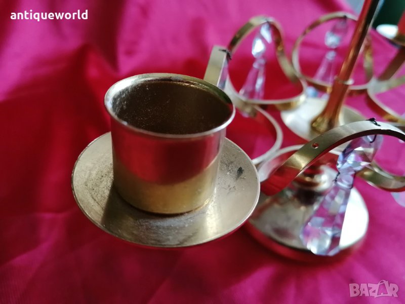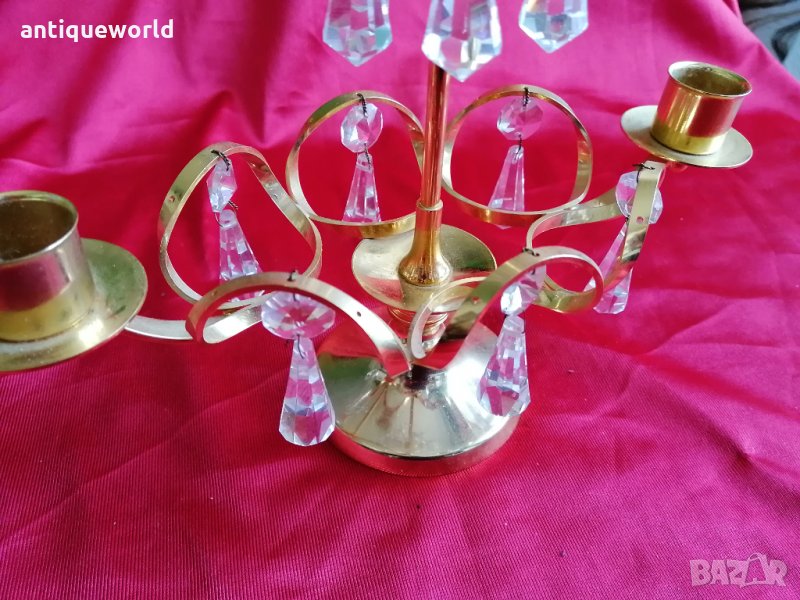Много Красив Шведски Свещник с Кристали и 24Карата Златно Покритие .Състоянието е видно.