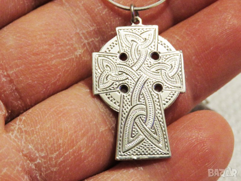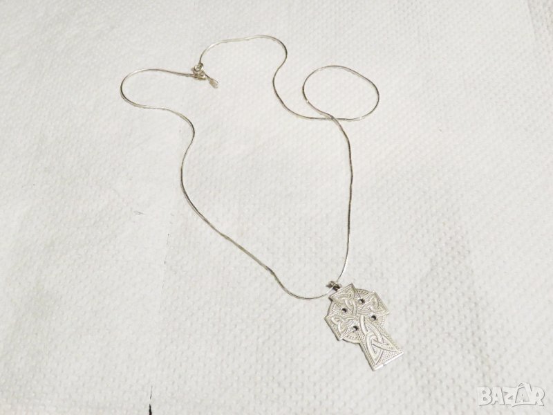 Сребърно синджирче и старинен сребърен кръст с викингски възел - символът на вечноста.