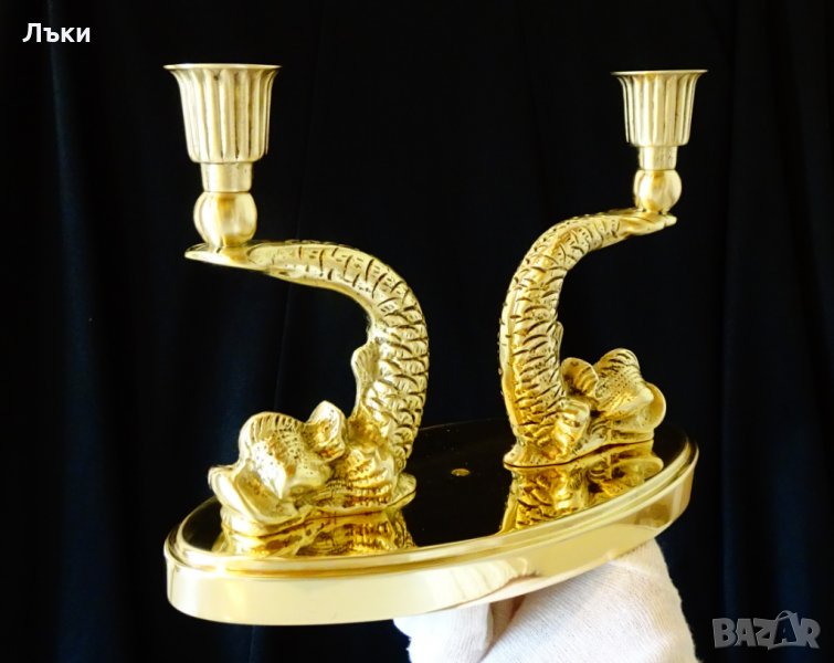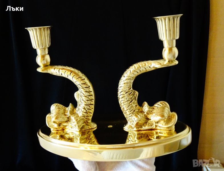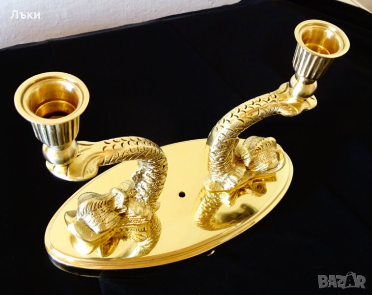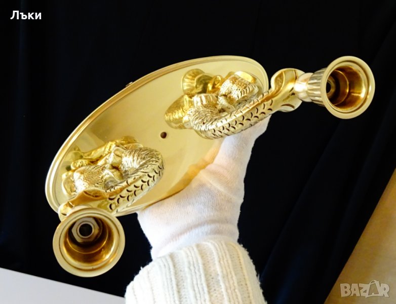 изработка от масивен бронз.Свещника представлява две виртуозно изваяни фигури на