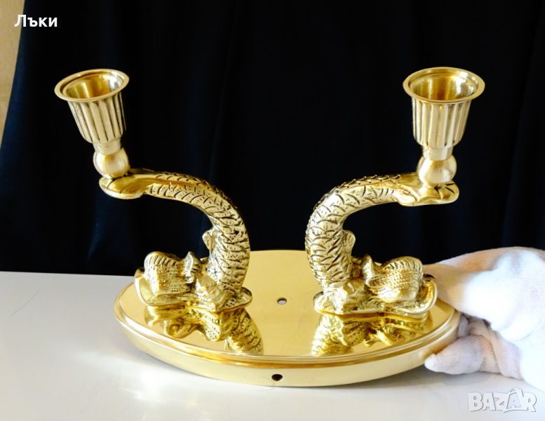 Старинен свещник за два броя свещи,майсторска ръчна