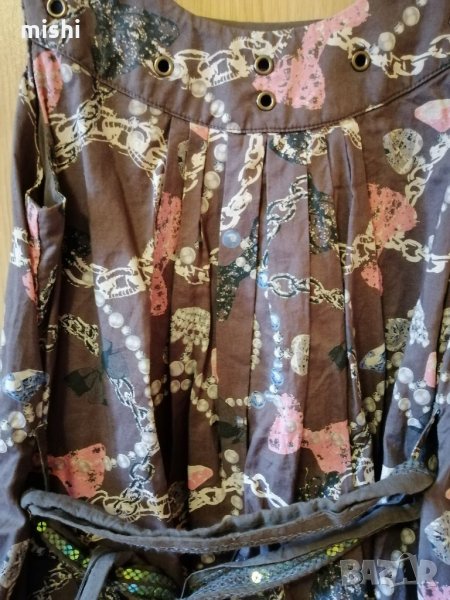 Доказана марка, страхотен дизайн, много красиви цветове и шарки, памучна материя. Рокля на листа: ширина от мишница до мишница - 33 см, дължина при гърба - 76 см. Кафява рокля: ширина от мишница до мишница - 35 см, дължина - 60 см.