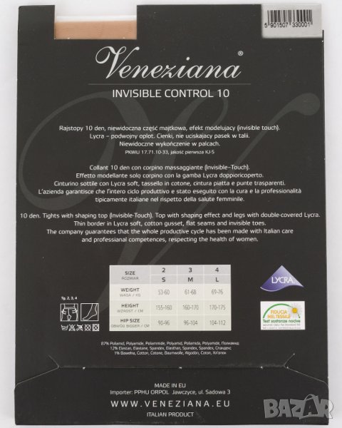 Състав на материята 87% полиамид, 12% еластан, 1% памук.