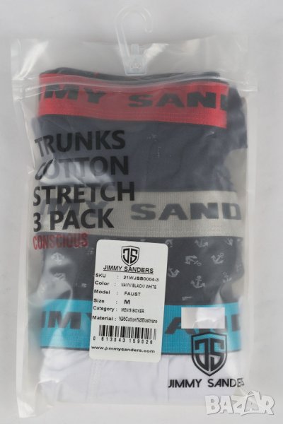 Памучни мъжки боксерки в тъмносиньо, черно и бяло марка Jimmy Sanders → Обява 32475849