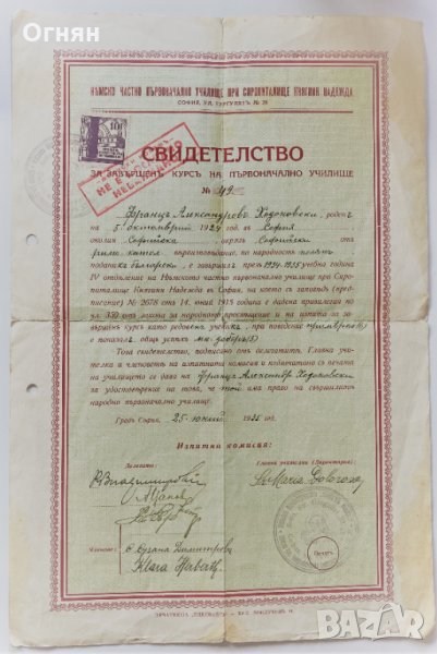 Свидетелство за завършен курс 1935 → Обява 32476228
