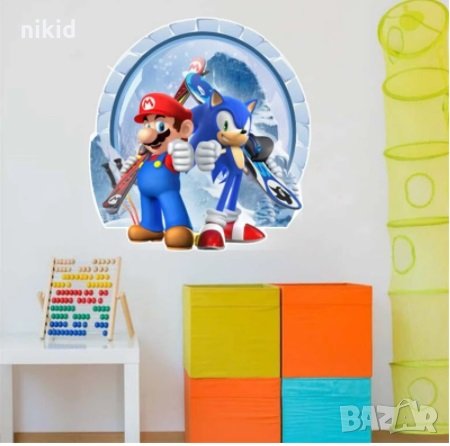 Соник Sonic и Супер Марио Super Mario самозалепващ стикер лепенка за стена и мебел детска стая → Обява 32481139