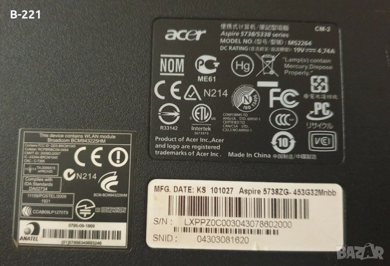 Acer ASPIRE 5738ZG на части. → Обява 32485091