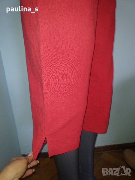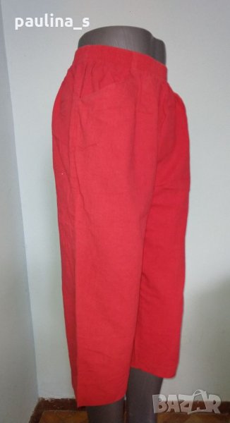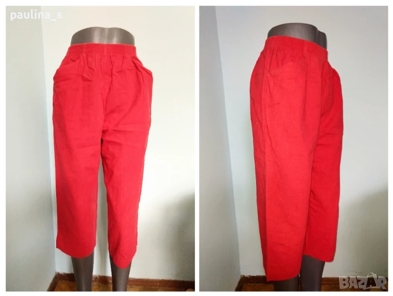 1️⃣. Колаж / M / 2XL - "Cabin Greek". Една бройка. Цената е крайна 24,99лв. Памучни бермуди в ярко червено. Талията се регулира и може се носи от няколко размера, L и 2XL като клин. Материята е памучен кенар и се моделира по тялото.