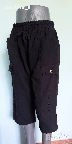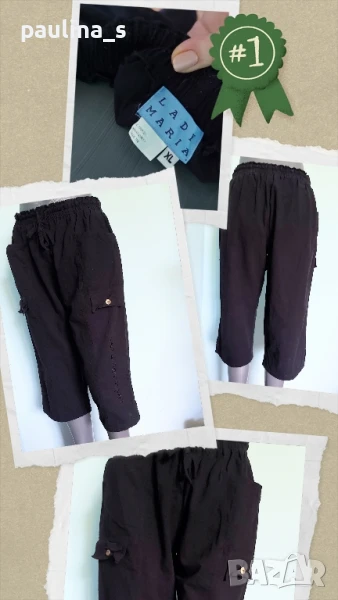 2️⃣. Колаж / L / 2XL - "Lady Maria". Цената е крайна 24,99лв. Маркови памучни бермуди с джобове, бродерии и цепки в страни на крачолите. Талията е с регулиране в набор, с ластик и шнур, може да се носи от няколко размера, посочени са. Една бройка са, без дефекти и етикет, като нови. Хипоалергична материя - кенар.