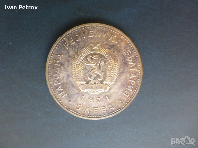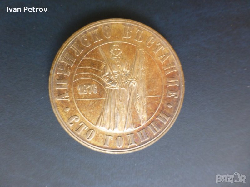 · 1 лв. 1976, 100 години Априлско въстание. Мед. Тегло 8 г, диаметър 27 мм, дебелина 2,2 мм; Цена = 20 €.
