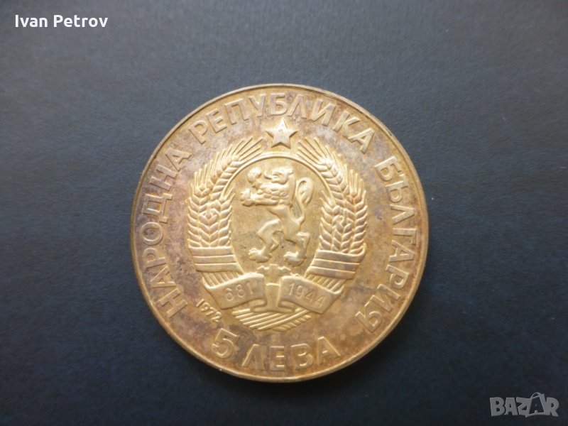 · 5 лв. 1972, Паисий Хилендарски. Сребро .900. Тегло 20.5 г, диаметър 36 мм, дебелина 3 мм; Цена = 50 €.