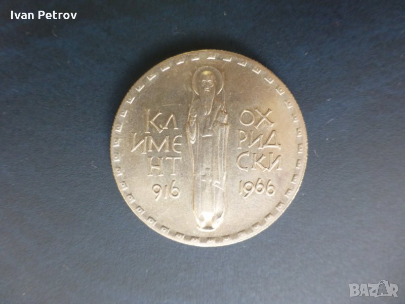 · 2 лв. 1966, Климент Охридски. Мед+никел. Тегло 11 г, диаметър 30 мм, дебелина 2,2 мм; Цена = 20 €.