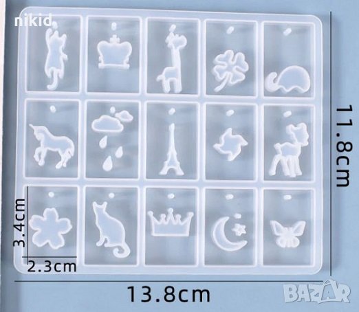 15 вида правоъгълни фигурки висулки силиконов молд за направа на колие колиета бижу смола → Обява 32489392