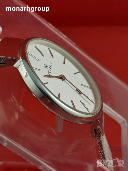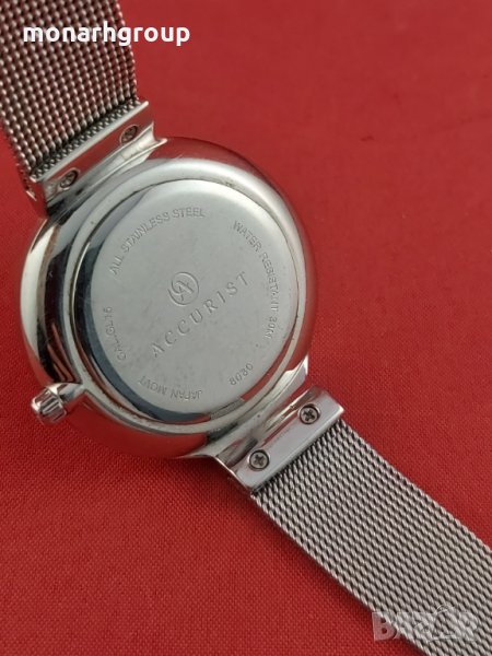 Accurist 8080 е невероятен и привличащ вниманието дамски часовник.Материалът на корпуса е неръждаема стомана, което означава високо качество на артикула, докато цветът на циферблата е сребрист.Що се отнася до водоустойчивостта, часовникът има устойчивост до 30 метра.