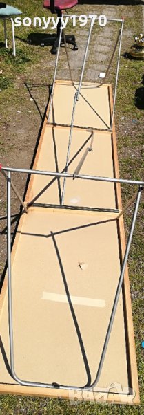 с лого west germany-295х69х59см-идеална за сергия за продажба на стоки или за къмпинга-сгъната е 99х59х8см-има дребни забележки нищо трагично-здрави стоики/крака-застопоряват се много яко-няма падане-от днес 28.02.22г пращаме със спиди или еконт с преглед и тест след превод на капаро за куриерската услуга поради зачестили некоректни потребители-поръчки само в тук в саита! по телефона и със смс не! краини цени! бартери не правиме! всеки ден нови неща-още 2-3 наши обяви тук