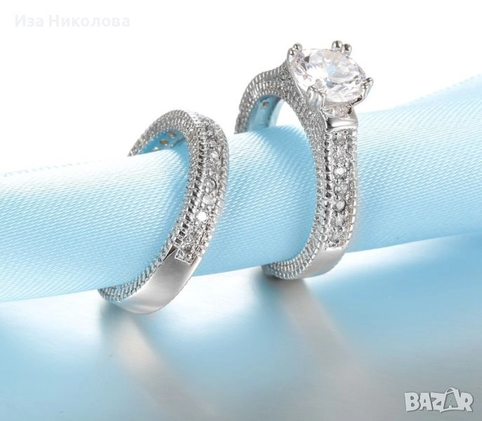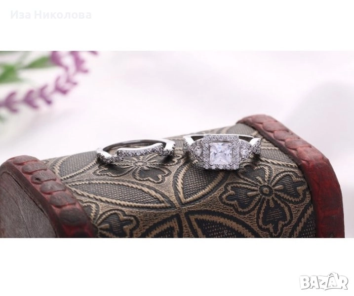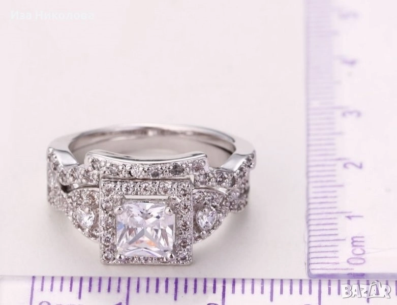 Комплект от 2 пръстена с бял сапфир и искрящи австрийски кристали, размер 10. снимка 15 и 16, цена 34.99лв