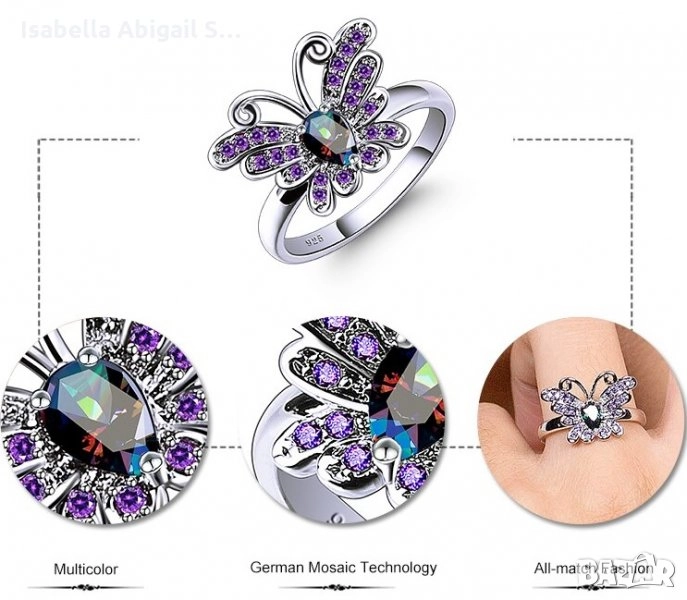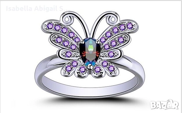 Пръстен с пеперуда от кубични цирконии, сребро проба 925 снимки 8 и 9, цена 24.99лв