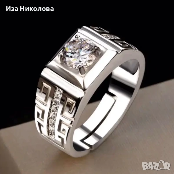 Стилен сребърен пръстен, универсален размер с искрящ бял