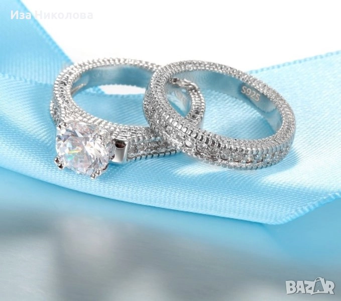 ----------------------------------------------------------------------------------------------------Комплект от 2 сребърни пръстени, бял сапфир с кристали. снимка 13 и 14, цена 34.99лв