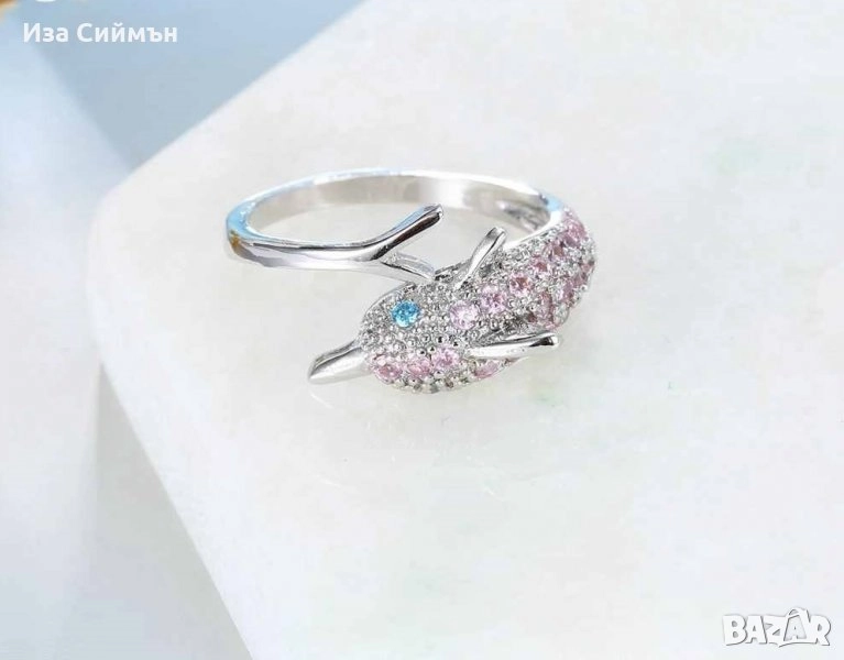Сребърен пръстен делфин с множество розови сапфири, размер 9, снимка 5 , цена 29.99лв