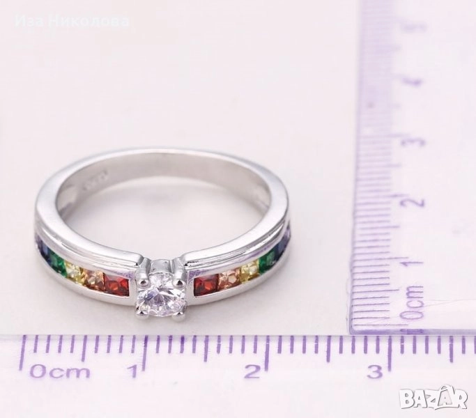 Сребърен пръстен с искрящи австрийски кристали и сини сапфири, размери 9 и 10. снимка 3, цена 34,99лв