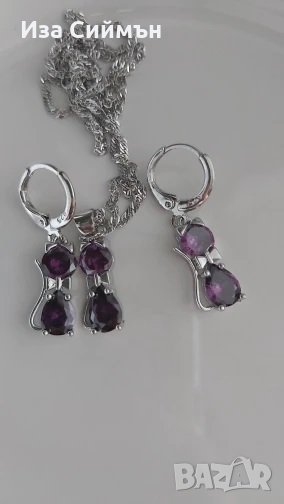 Сребърни обици и колие котка с розови сапфири, снимка 1 - Бижутерийни комплекти - 32502555 Сребърни обици и колие котка с розови сапфири, снимка 2 - Бижутерийни комплекти - 32502555 1/2