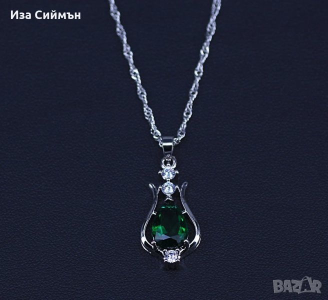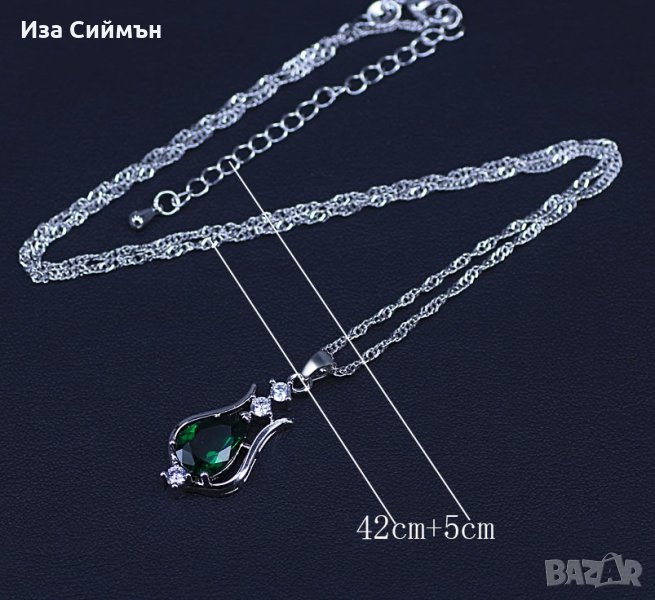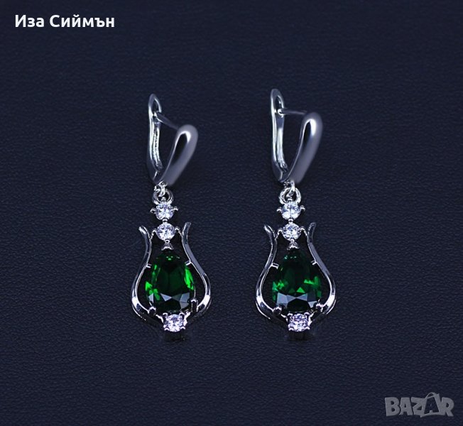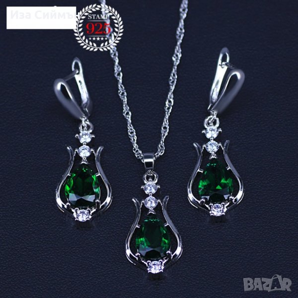 Сребърен комплект обици и колие с рубин, на снимката са смарагди(без снимка 1), но комплекта, който се продава е с рубини!Рубините, които се продават са на първата снимка, другите са информативни.