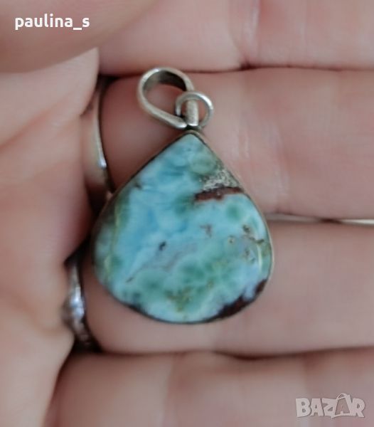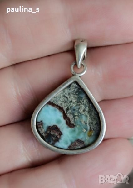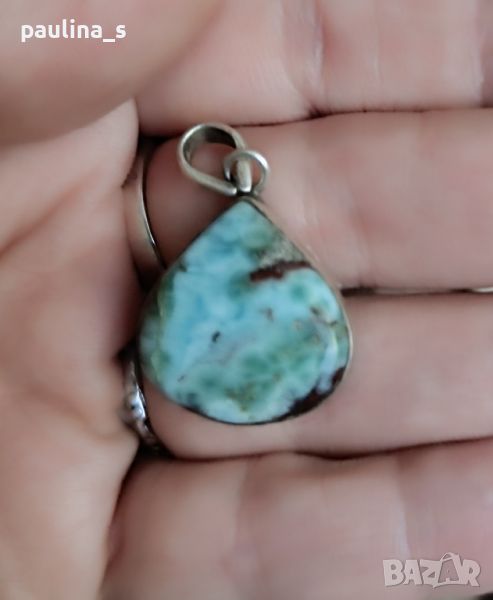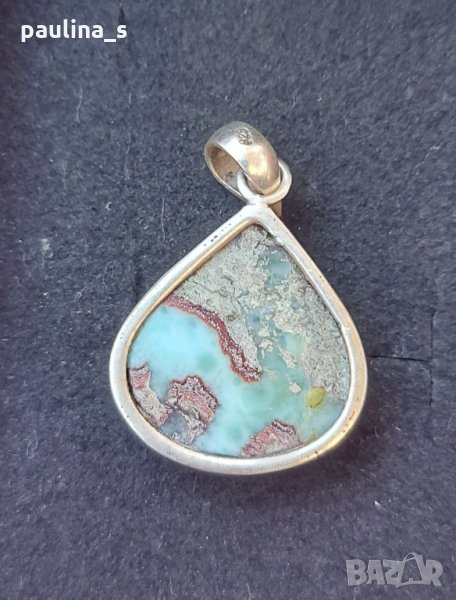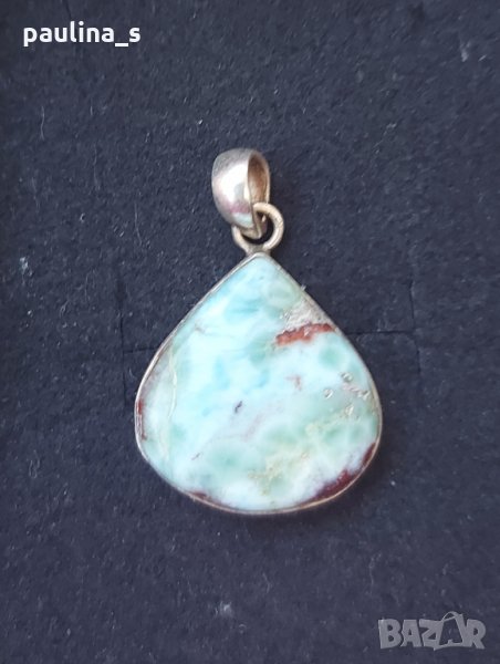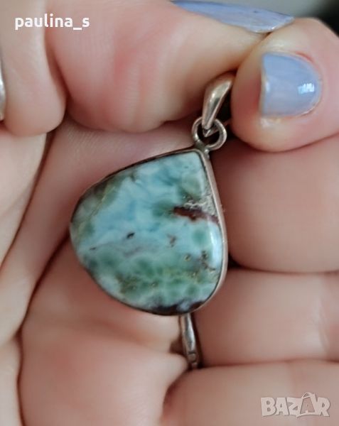 1️⃣. Висулка / Педантив с камък Ларимар от Доминиканската република, със сребърен обков. Цената е крайна, без пазарлъци 48 евро. Среброто е с маркировка 925. Размер 21мм на 21мм. Както всички естествени камъни, Ларимар има лечебни и магически свойства. На литотерапевтите се препоръчва да носят продукти от хаитянски