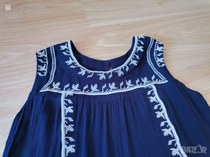 Тъмно синя с бяла бродерия.