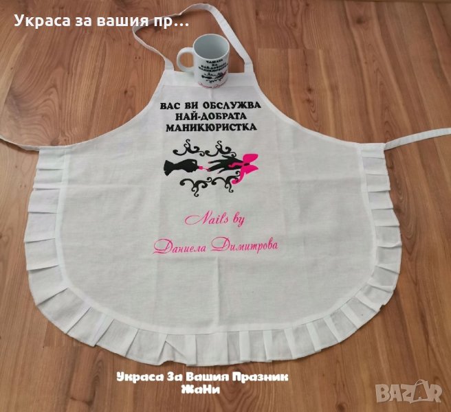 Подаръчен комплект за Маникюристка * престилка с текст по поръчка * чаша, снимка 1 - Подаръци за жени - 32511805 Подаръчен комплект за Маникюристка * престилка с текст по поръчка * чаша, снимка 2 - Подаръци за жени - 32511805 1/2