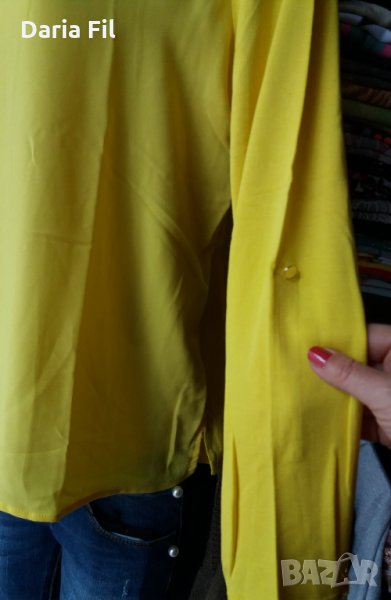 РАЗПРОДАЖБА Жълта риза/блуза с метален аксесоар на деколтето, снимка 1 - Ризи - 32512647 РАЗПРОДАЖБА Жълта риза/блуза с метален аксесоар на деколтето, снимка 2 - Ризи - 32512647 1/2