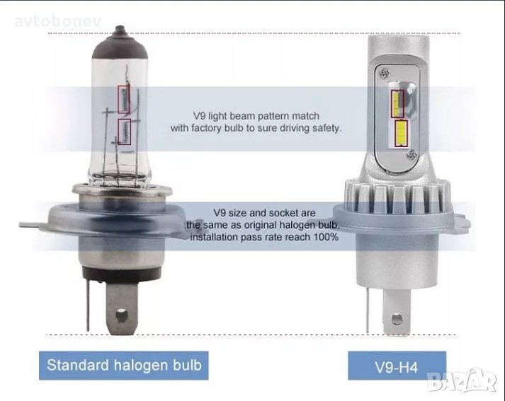 Качествени LED крушки V9-H1,H3,H4,H7,H8,H11,HB3,HB4- к-т/2бр/