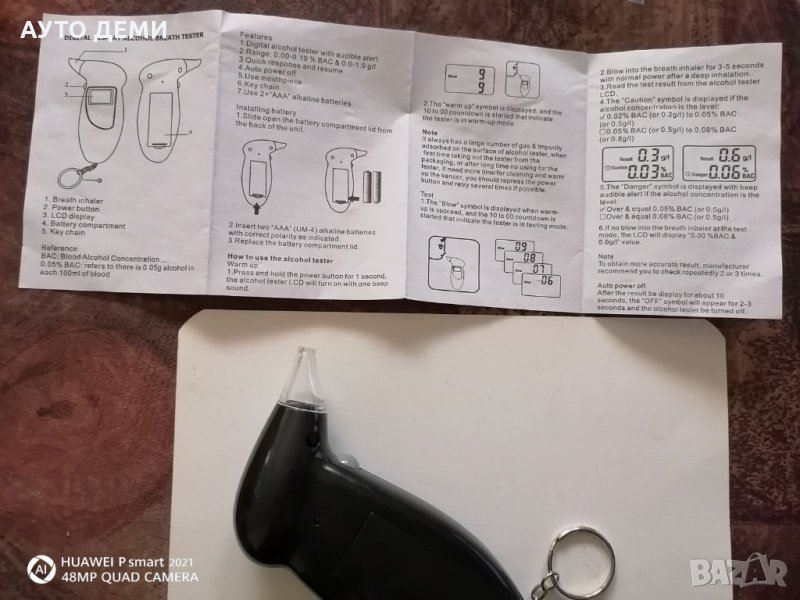 Дигитален дрегер за алкохол с 5 мущука + батерии