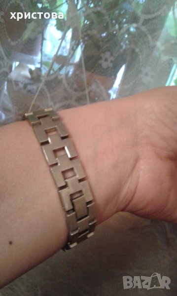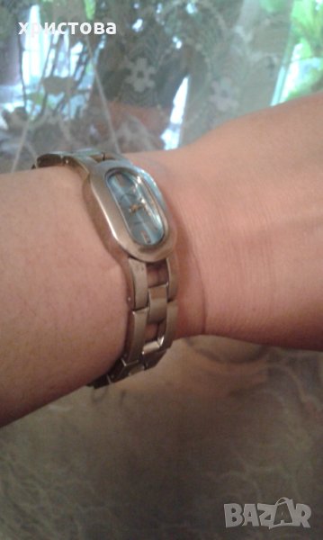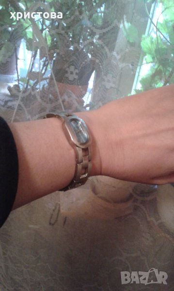 Красив дизаин,тип гривма.Чaсовника работи с батерия която вече е изхабена.Не се навива а само се сверява от копчето.